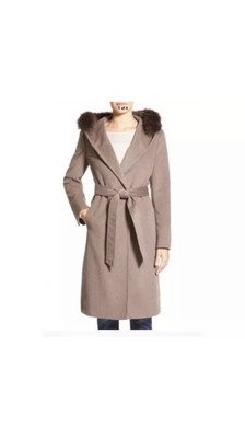 ELLEN TRACY Genuine Fox Fur \u0026 Wool taupe wrap coat