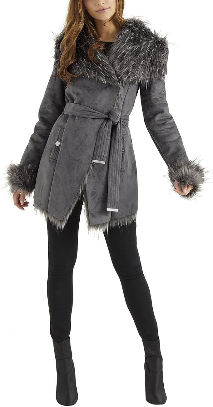 Lipsy Womens Faux Fur Bonded Wrap Coat lipsy grey wrap coat