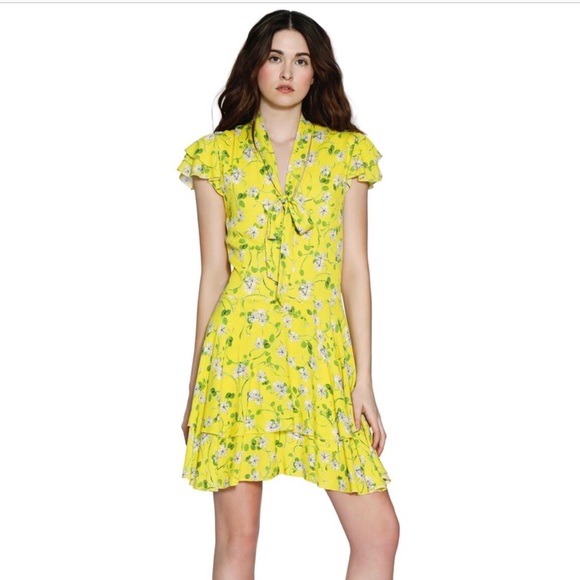 Alice Olivia Moore Flutter Sleeve Dress alice and olivia yellow floral dress
