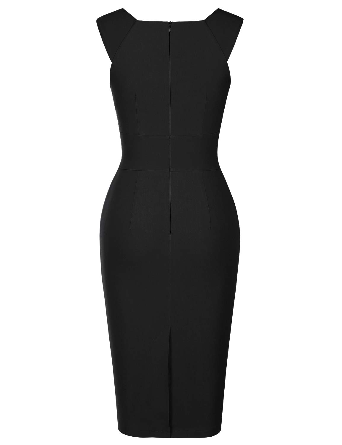 MUXXN Women's Retro 1940s Scoop Neck formal black dress for work