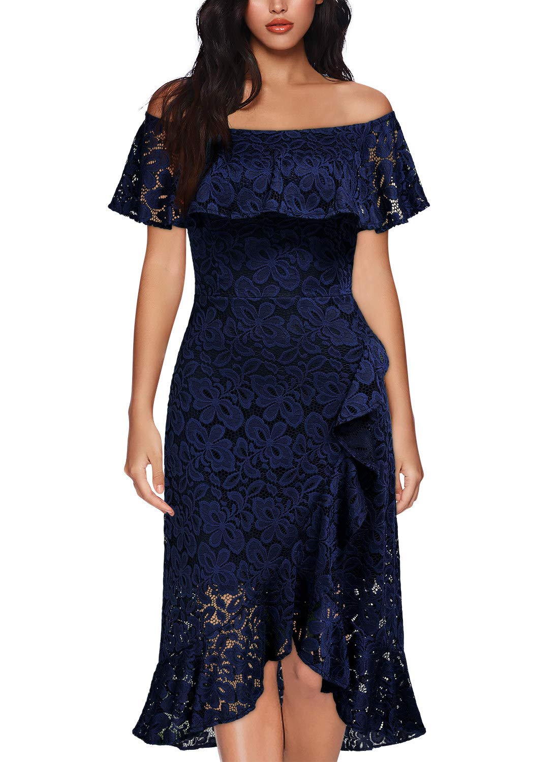 MISSMAY Women's Vintage Floral Lace boat neck cocktail dress with sleeves