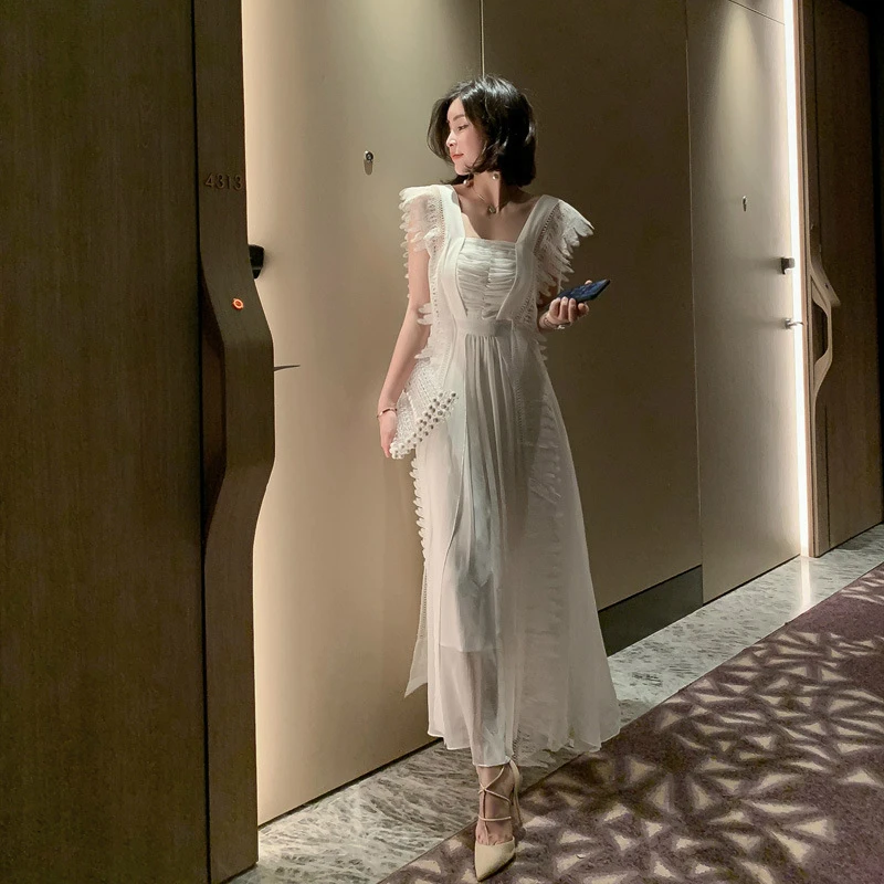 Women's White Lace Ruffles Fashion womens designer white dresses