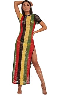 Cotton String Mesh Fishnet Short Sleeve jamaican wrap dress
