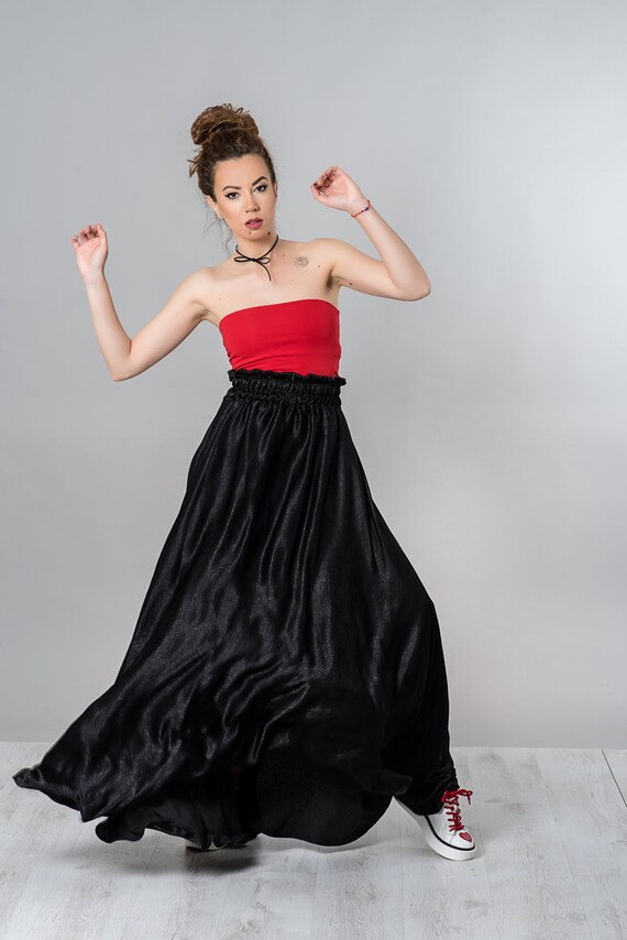 Black Skirt Maxi Skirt Silk Skirt High long black maxi skirt plus size