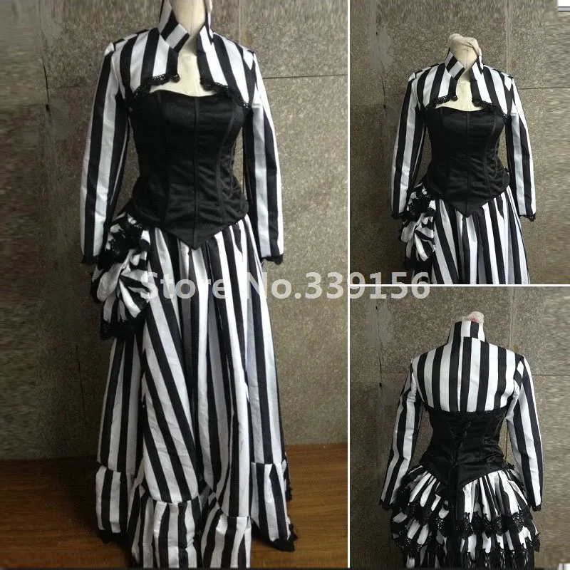 Gothic Medieval Victorian Dress Costume black and white striped victorian dress