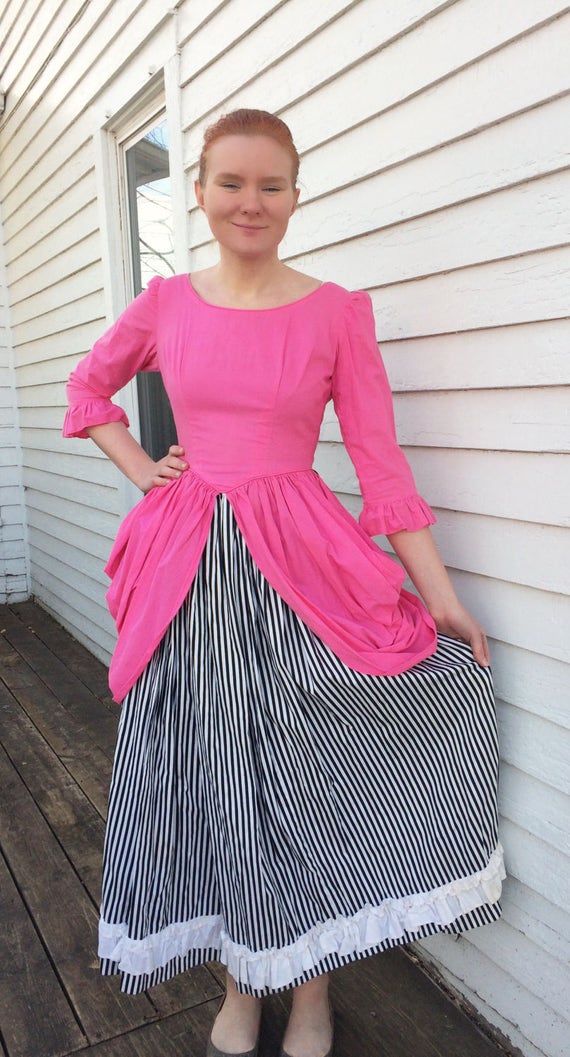Victorian Costume Dress Gown Pink Black black and white striped victorian dress