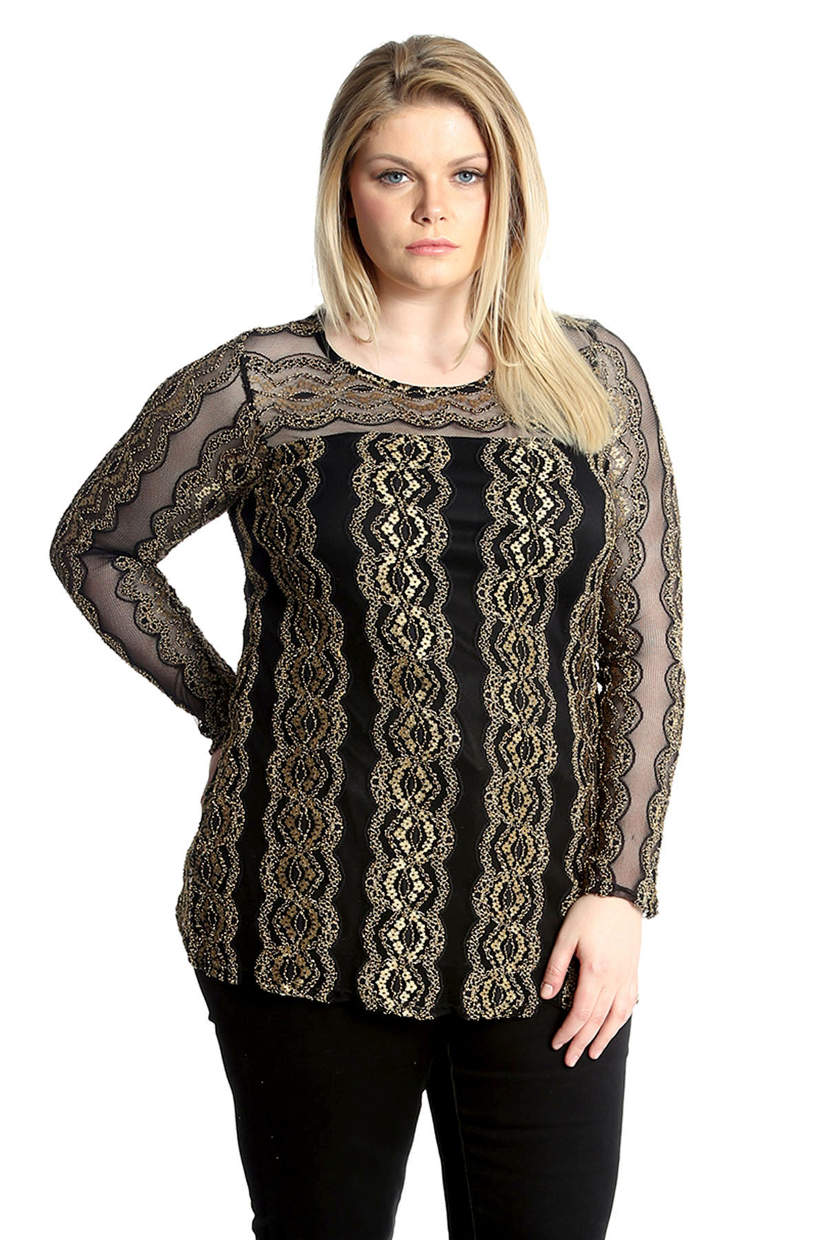 New Ladies Plus Size Top Frill Lace gold plus size top