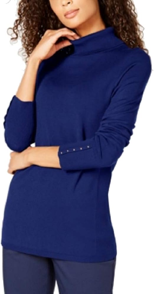 Buttoned-Sleeves Turtleneck Sweater jm collection turtleneck sweater