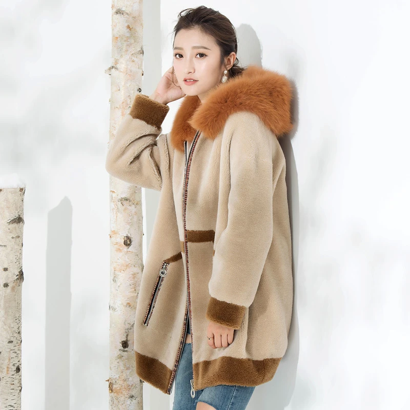 Wool Coats Plus Size Korean Fox Fur  plus size wool coat with fur collar