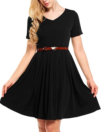 Meaneor Women's Ladies Belted Dress ladies casual midi dresses
