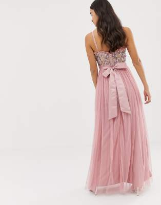 maya cami strap contrast embellished top tulle detail maxi dress in vintage rose