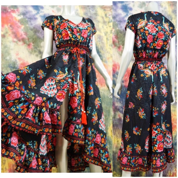 Gorgeous Black Floral Peacock High Low peacocks black floral dress