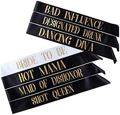 8 Pack Black Bachelorette Party Sashes bride and bridesmaids sashes