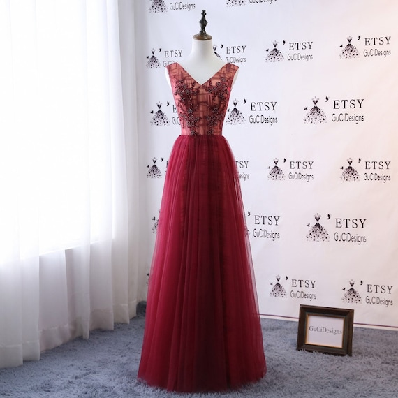 2019 Modest Ball Gown Burgundy Prom formal dress design 2019