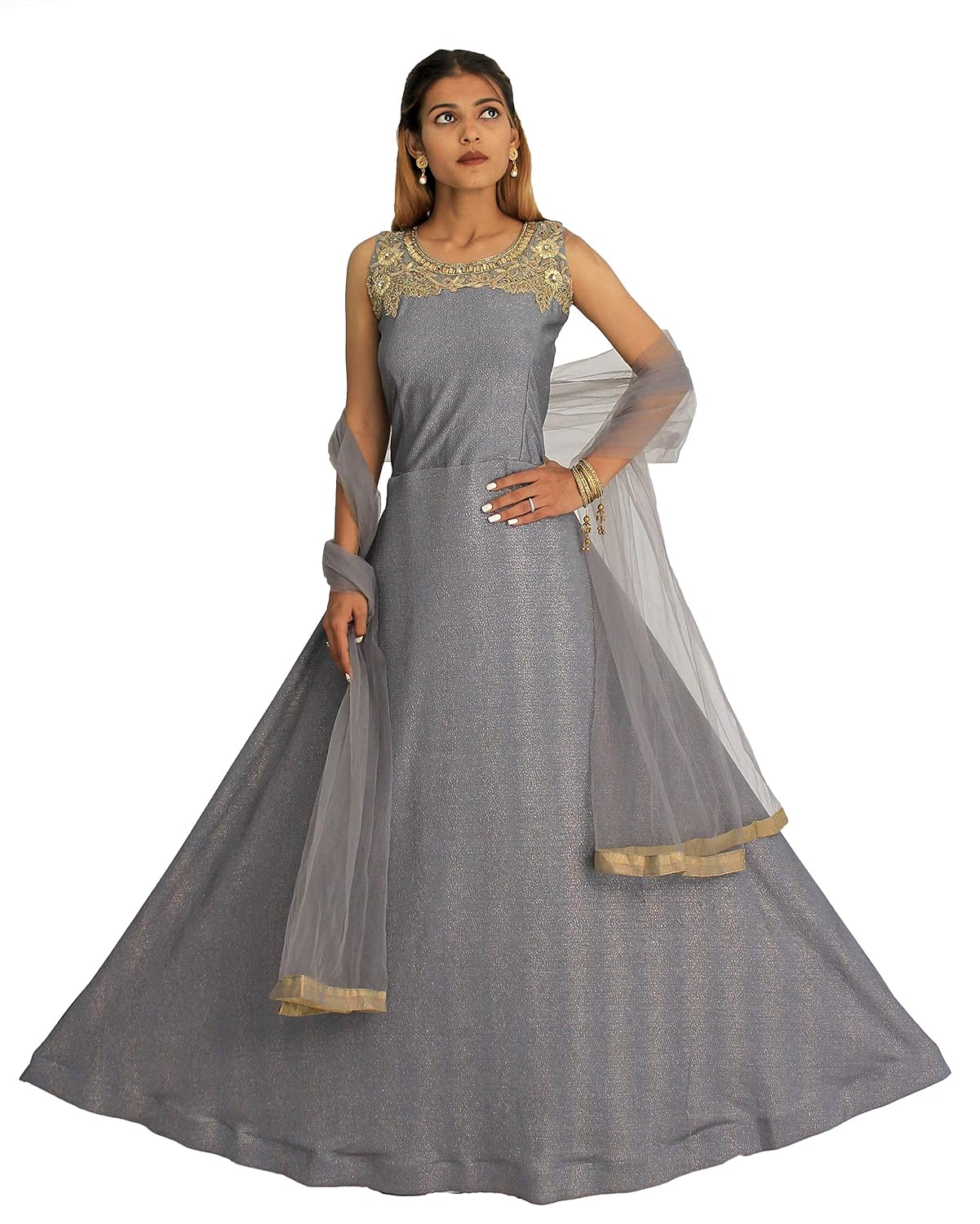Embroidered Polyester Stitched Gowns one piece gown with dupatta