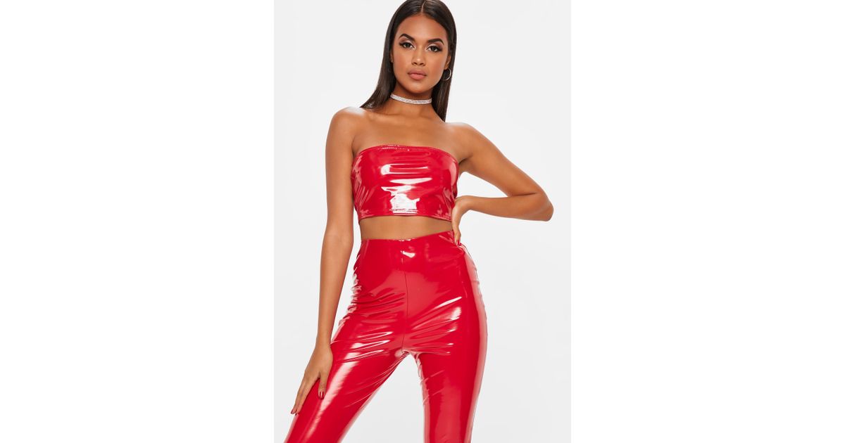 Red Vinyl Bandeau Mini Dress | Missguided red vinyl bandeau dress