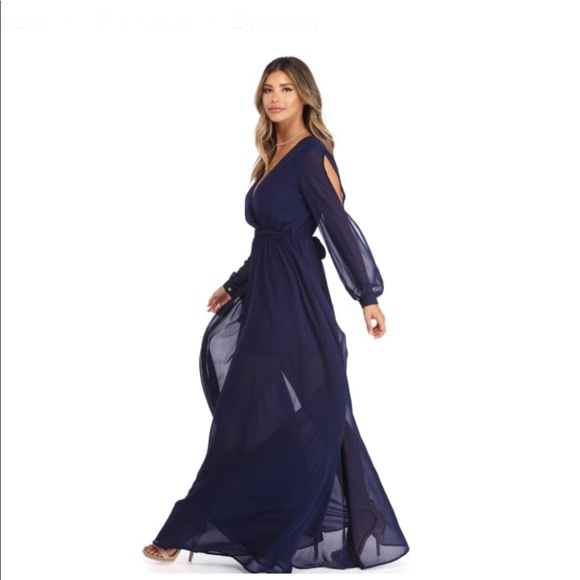 Audrina Navy Long Sleeve Chiffon Dress navy long chiffon dress