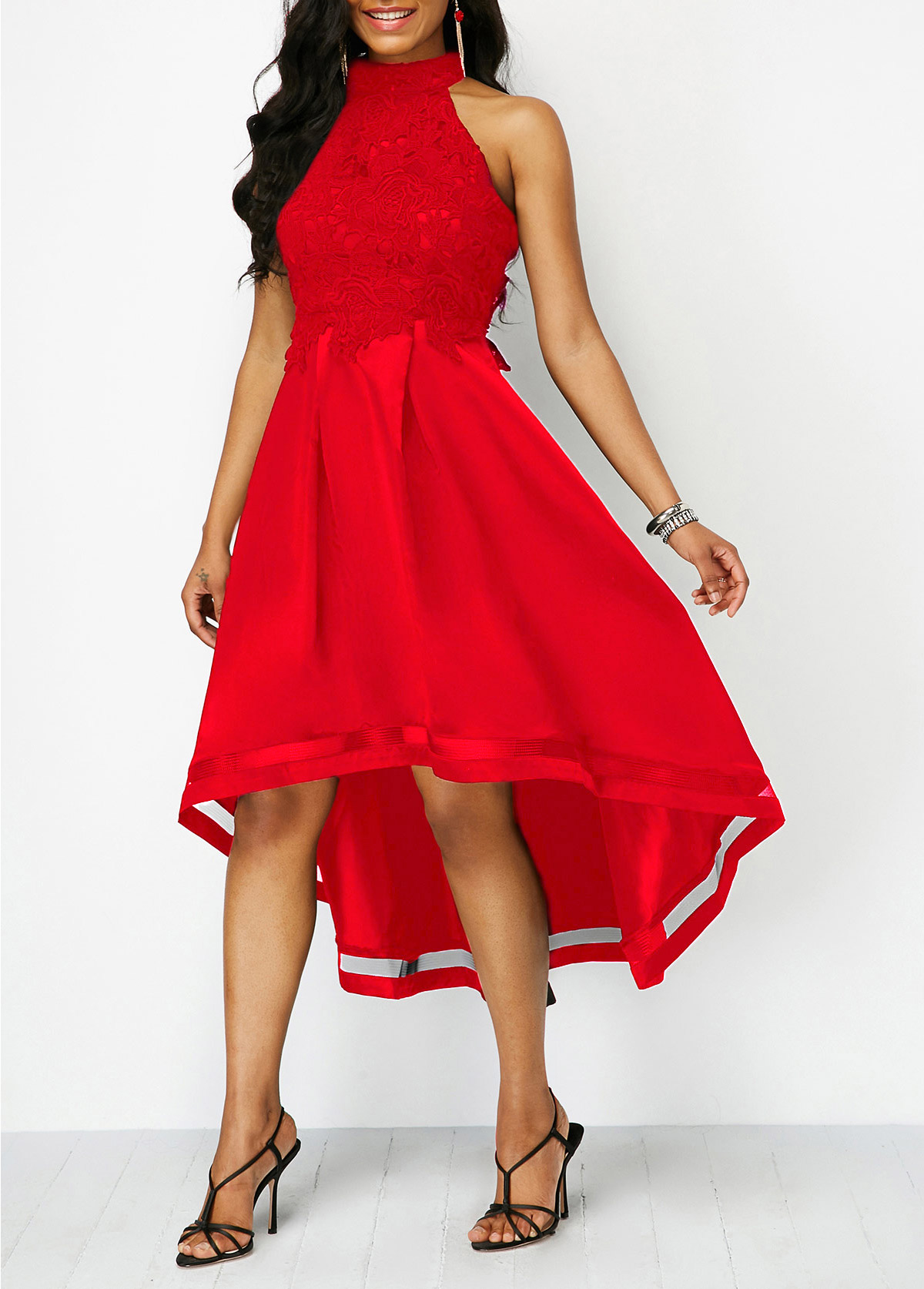 Lace Panel Sleeveless Wine Red High Low lace panel wine red sleeveless high low dress