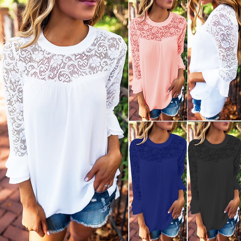 UK Womens Chiffon Lace Casual T-Shirt summer tops size 16