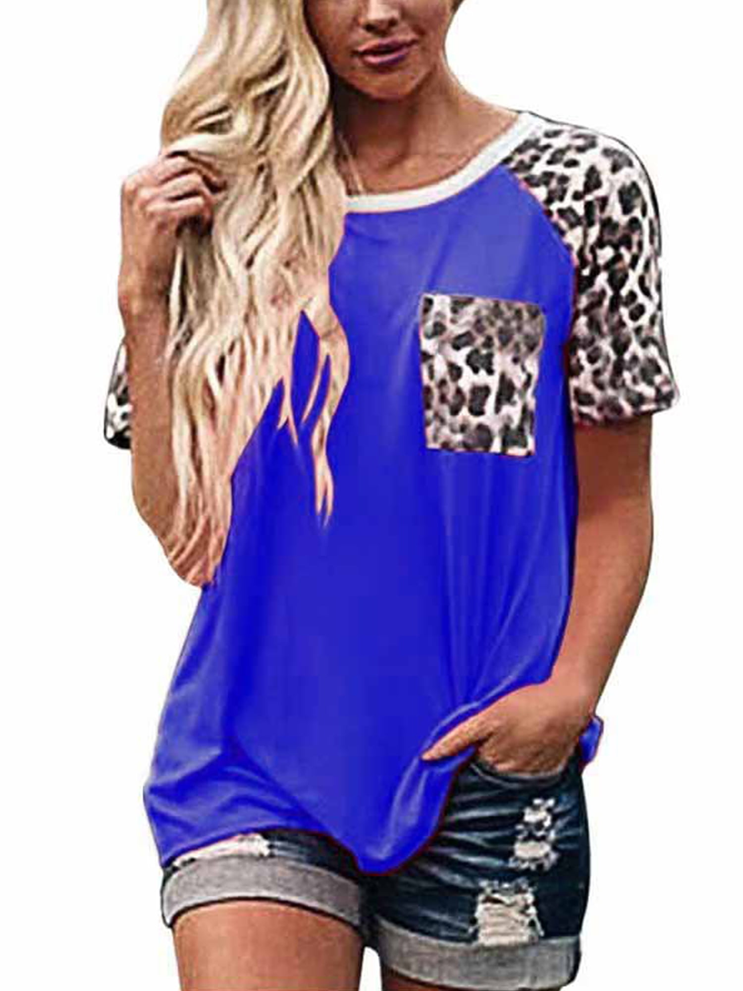 V Neck Basic Tops Leopard Pocket Ladies summer tops size 16