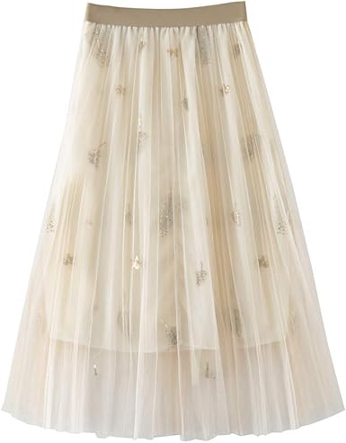 TIFIY Women's Elegant High Waist tulle midi skirt uk