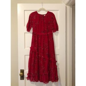 Windpoppy Ruffle Midi Dress in madewell windpoppy dress