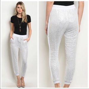 White Sequin Joggers