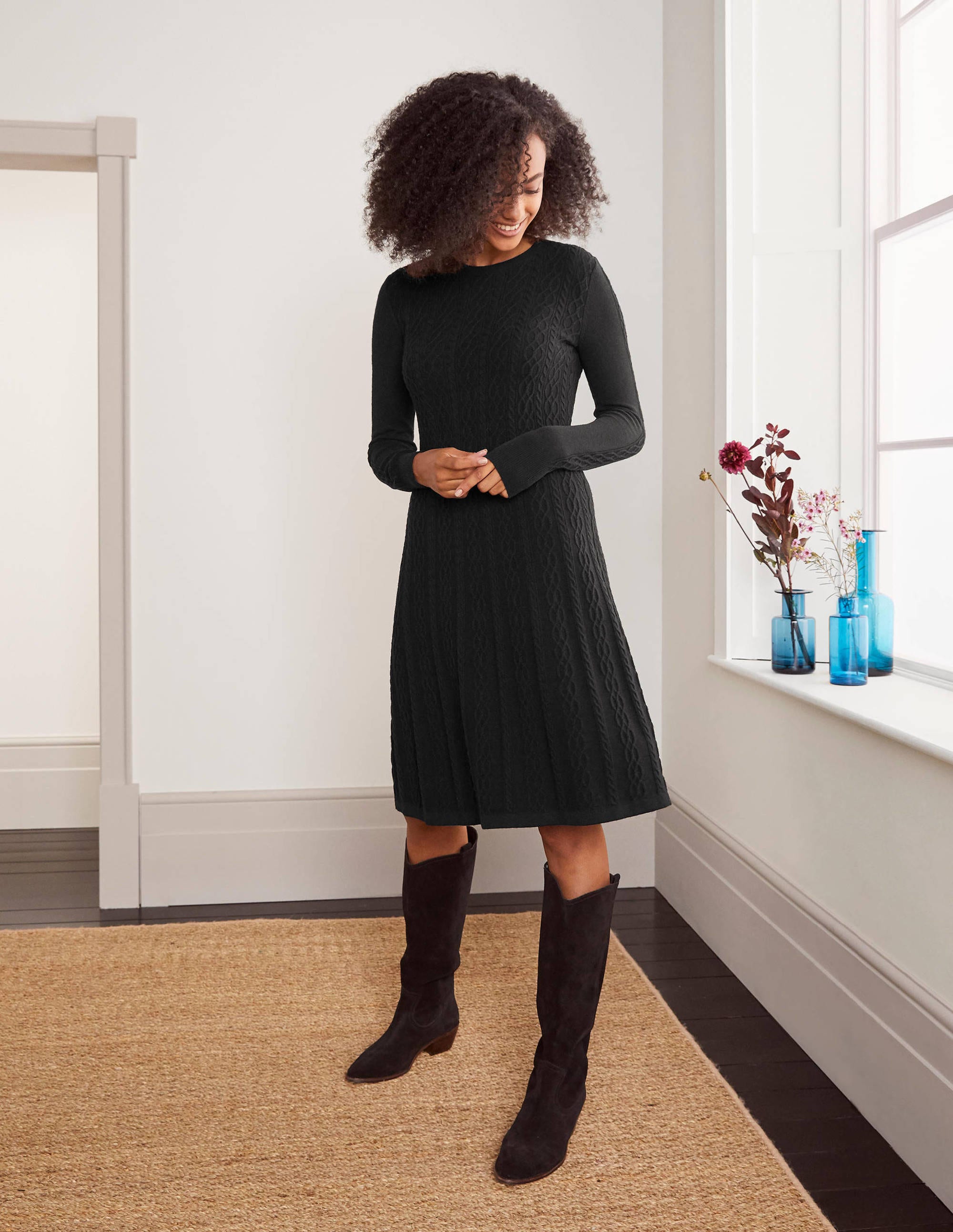 Erica Cable Knitted Dress - Black cable knit dress uk