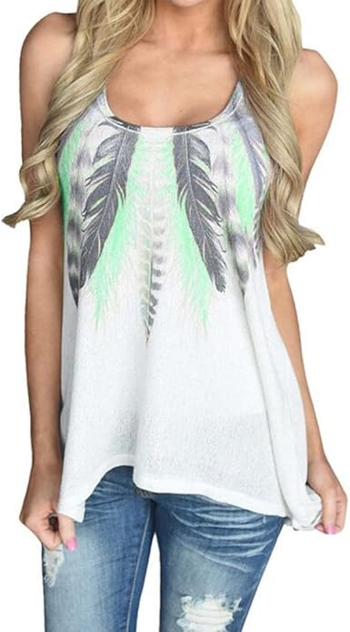 Staron Women Blouse Tank Tops Feather amazon long tank tops