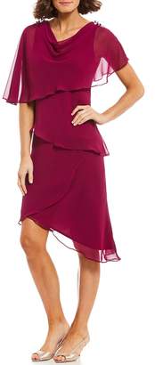ignite evenings georgette tiered capelet dress