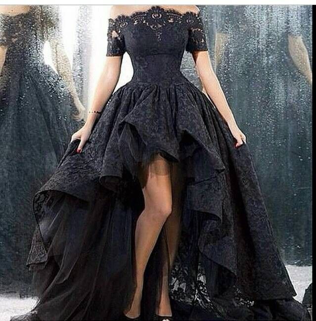 Black V Neck Ruffle High-low Dress black high low dress formal