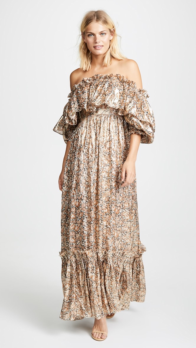 LoveShackFancy Tara Lame Ruffle Off loveshackfancy tara dress