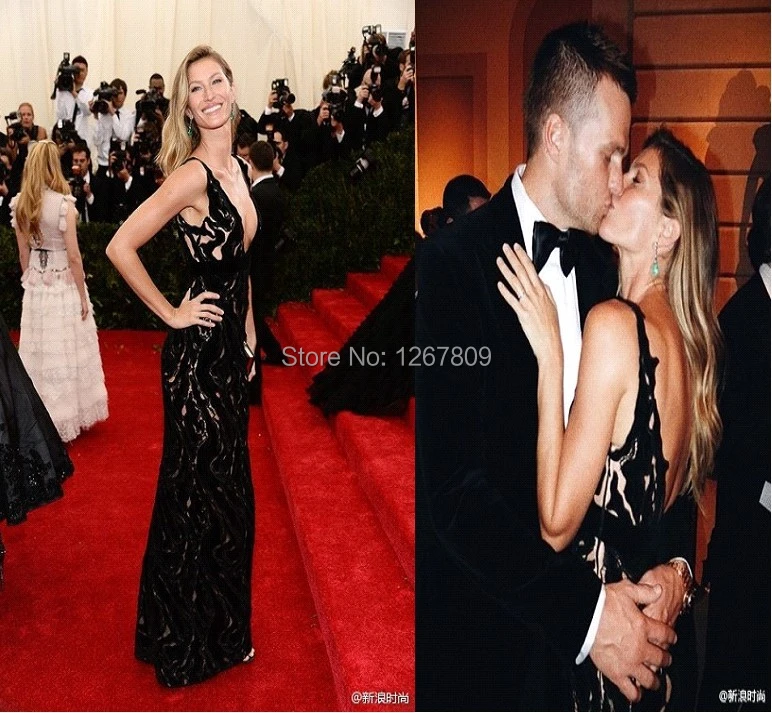 Sexy Black Color Deep V Neck Celebrity gisele bundchen red dress