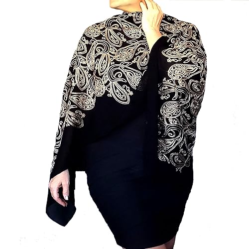 Black Wrap Metallic Gold Shawl plus size evening jackets and wraps