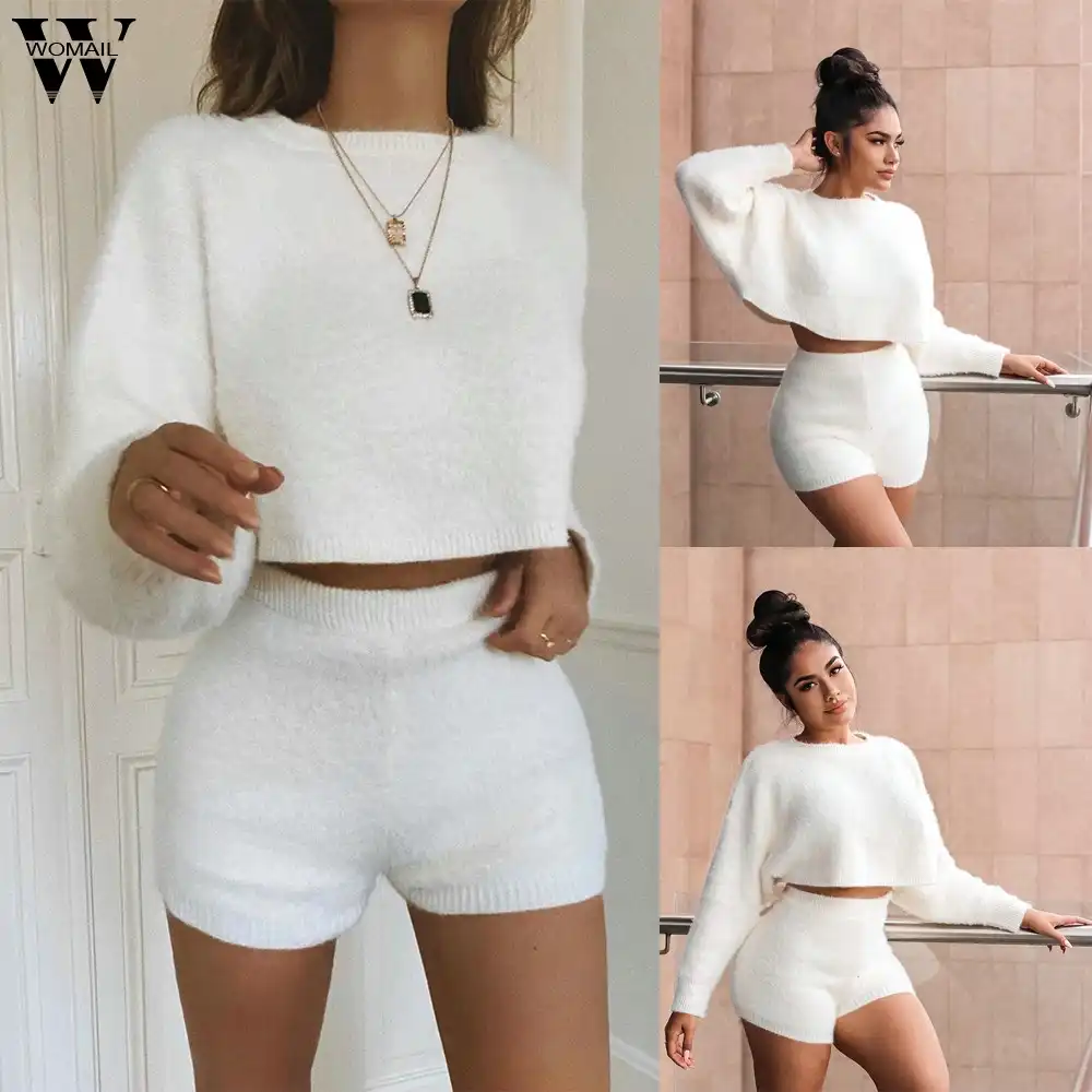 Womail Women tracksuit Autumn Two Piece white shorts outfit women's