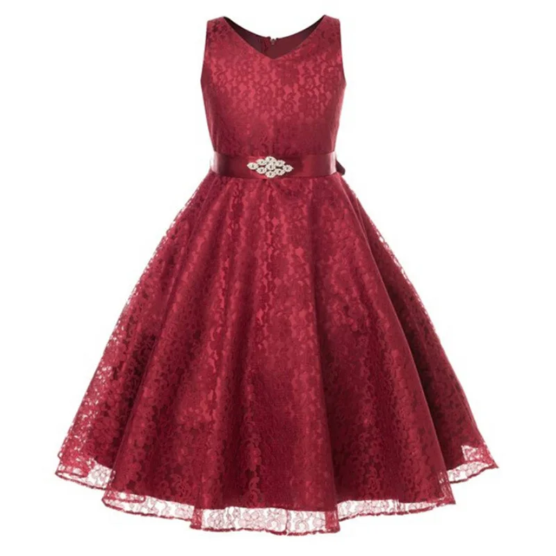 Affordable Keyhole Back Ivory Lace Bow ivory and burgundy flower girl dress