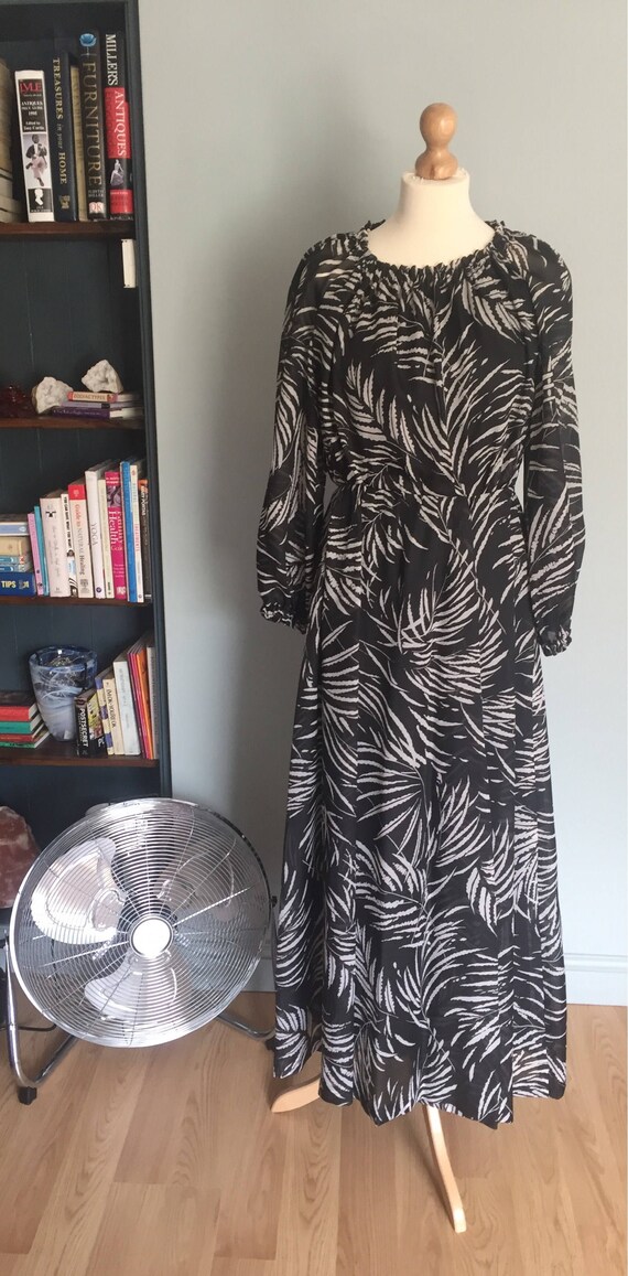 leaf print prairie boho maxi dress | Etsy black and white leaf print dress