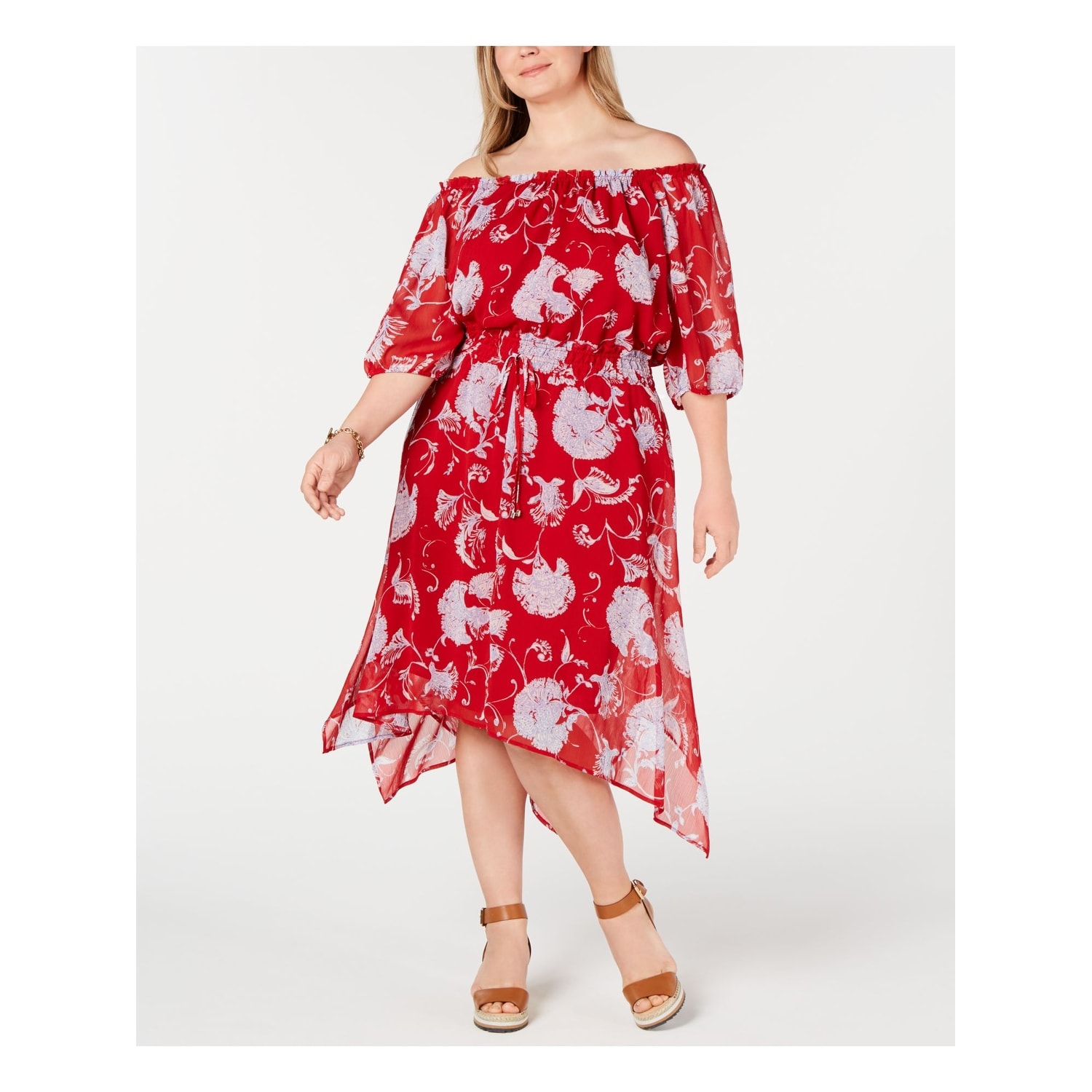 Shop TOMMY HILFIGER Womens Red Floral tommy hilfiger red floral dress