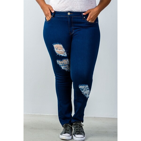 Low Rise Dark Blue Distressed Jeans ladies jeans size 20