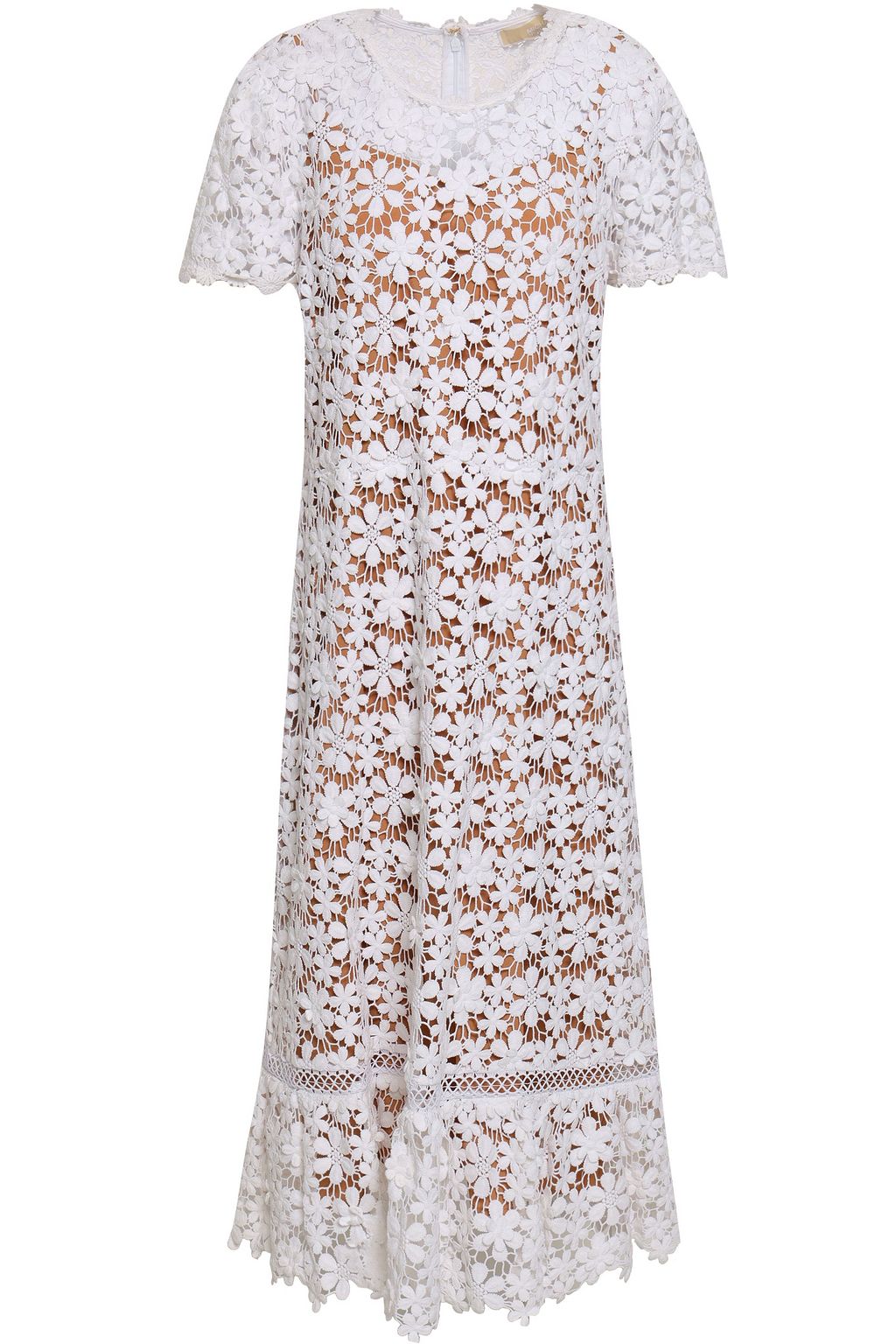 Floral-appliquéd cotton-crochet dress white cotton crochet dress