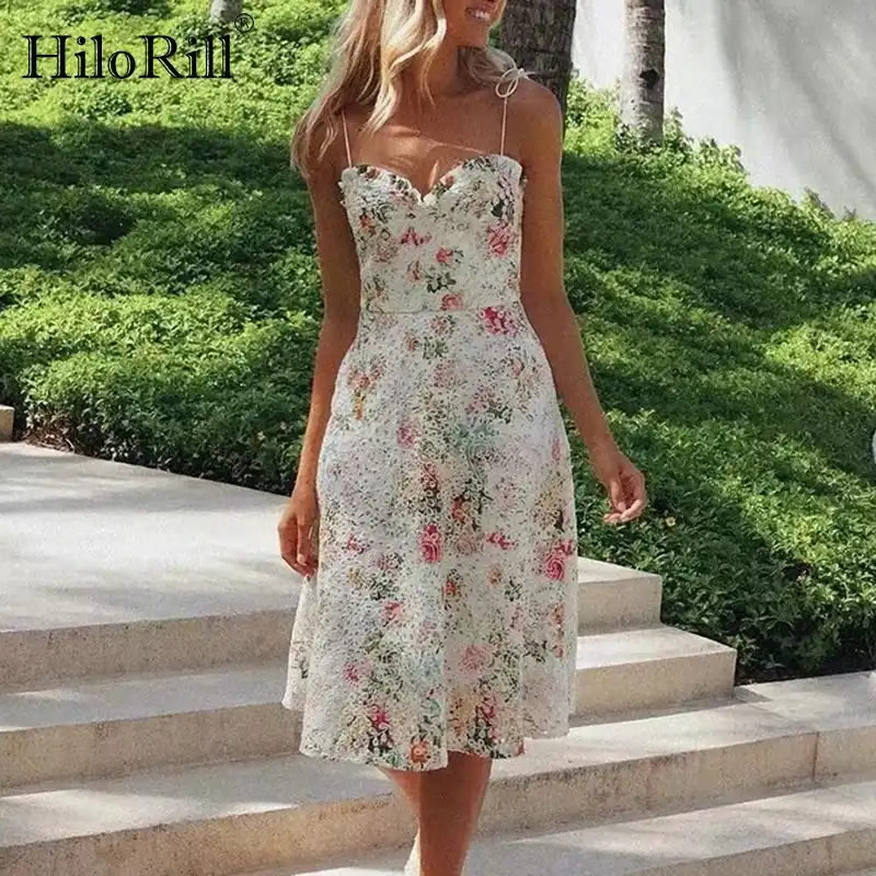 HiloRill Women Lace Embroidery Midi lace embroidered midi dress