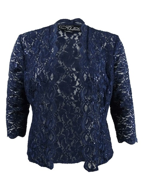 Petite Sequined Lace Jacket 12p Navy alex evening jackets