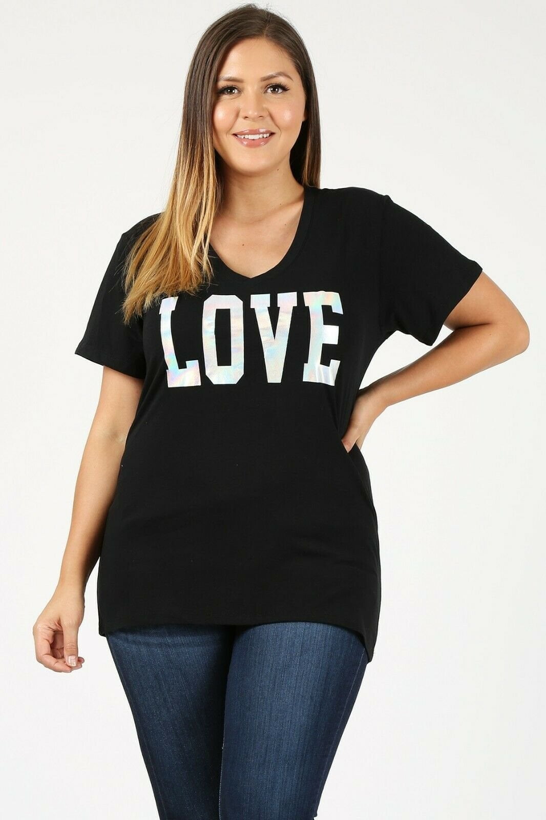 Short sleeve hologram graphic tee LOVE tory plus size clothing