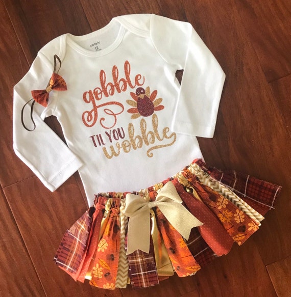 Baby Girl Thanksgiving Outfit Gobble gobble til you wobble baby outfit