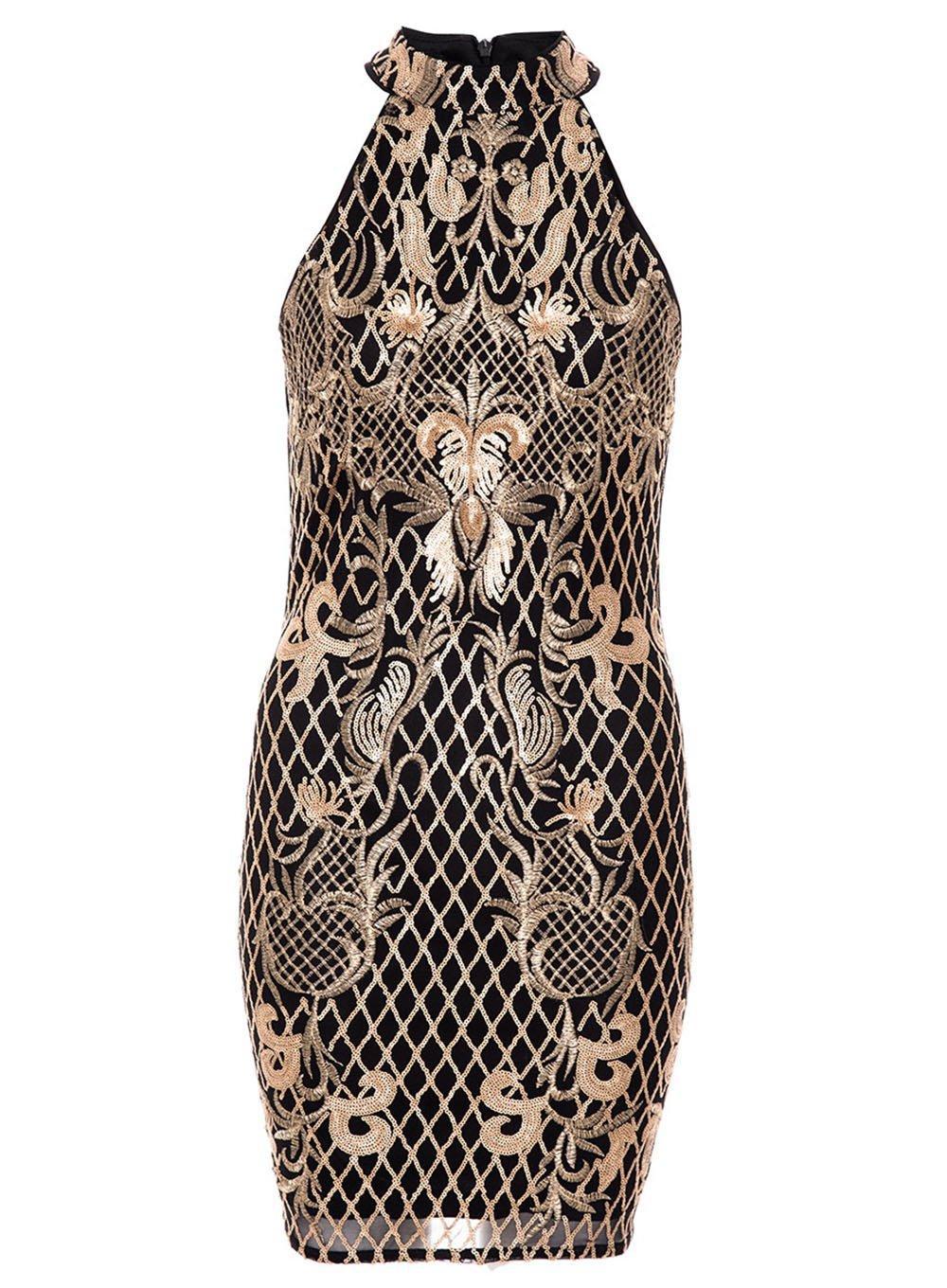 And Gold V Neck Fishtail Maxi Dress black and gold dress quiz