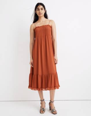 Pintuck Cami Ruffle-Hem Maxi Dress in madewell cami midi dress