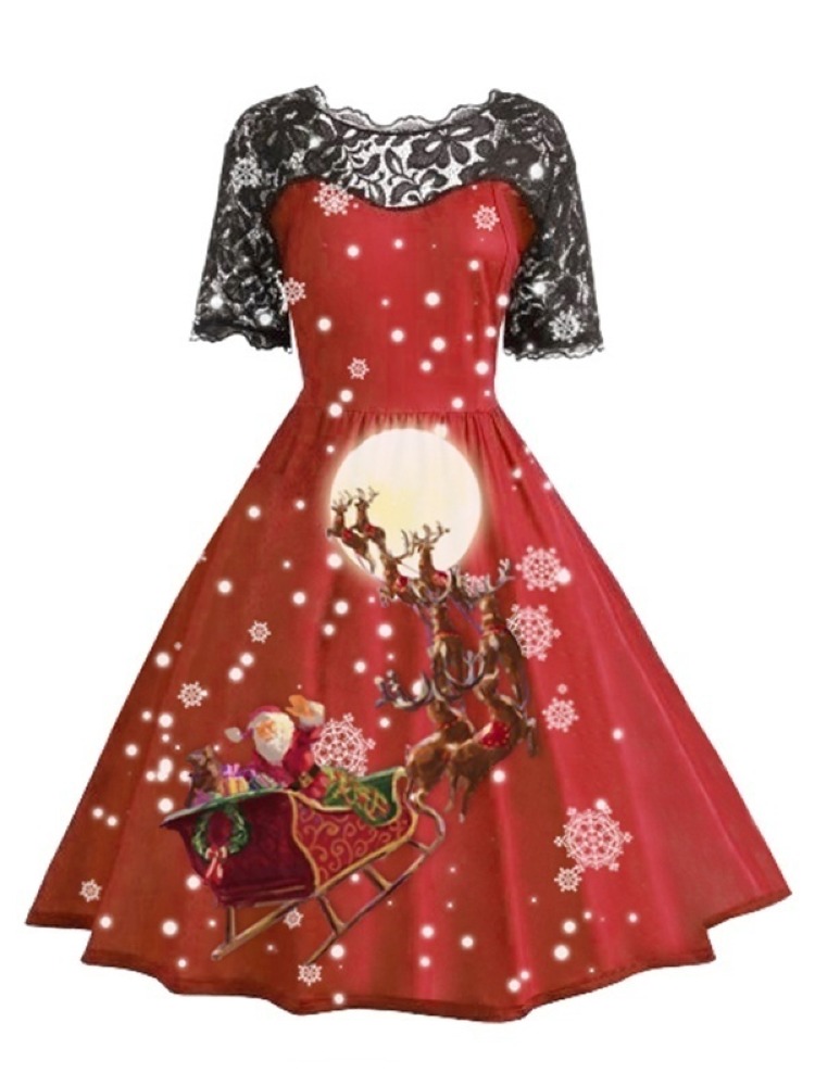 Lace Short Sleeve Reindeer Santa reindeer dress womens