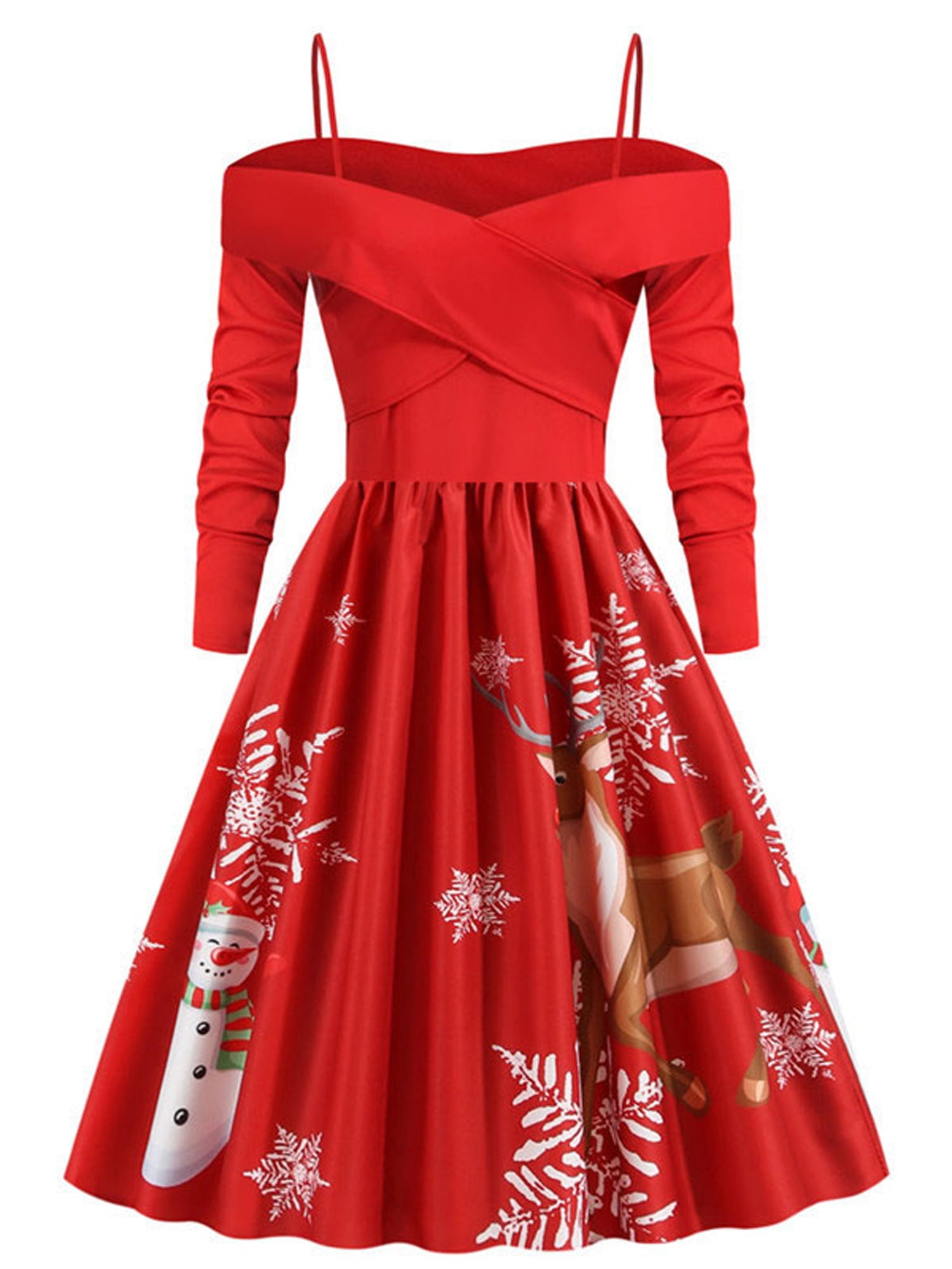 Women's Christmas Long Slleeve Snowman reindeer dress womens