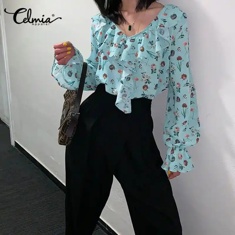 Celmia Oversized V Neck Cute Floral cute office tops