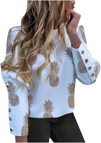 Neck Pineapple Printed Tee Tops cute office tops